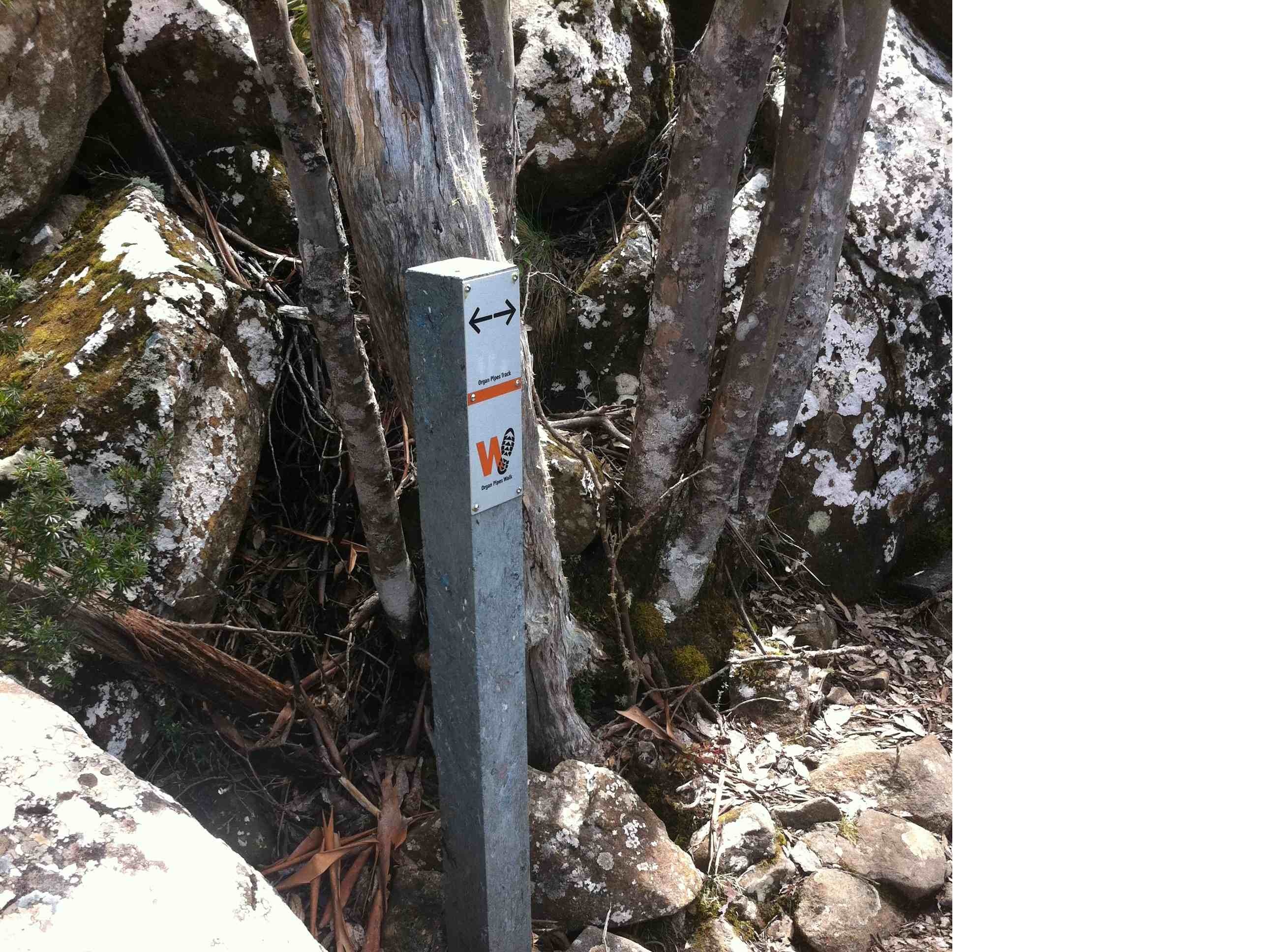 The Trust's main reason for signs on the Organ Pipes Track would seem to be to clearly indicate the start of the main cliff access tracks. These are difficult to find in all the regrowth and they would prefer us to stick to them, rather than blasting up/down wherever we feel like.