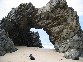 Mars Arch is a cool looking dolerite arch, rising out of a beautiful sandy beach near Mars Bluff, on the east coast of Bruny Island. This sequence is of Dave Humphries attempting the first ascent of the seaward side of the arch.