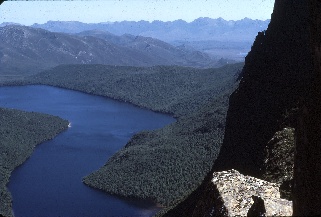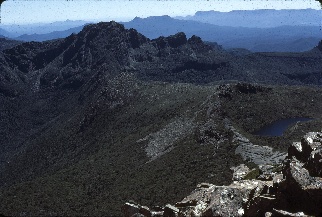 Lake Judd, Schnell's Ridge, Western Arthurs from Mt Lot slot, 1974. Photo S Karpiniec