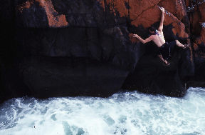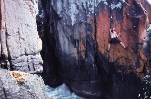 The coastline along Tinderbox is lined with dolerite cliffs up to around 20m or 30m high. Most of the rock of climbing quality is shorter than this though: around 4 to 10m and most of this is concentrated on the area between Fossil Cove and the popular snorkelling spot sometimes called Fisherman's cove. The best "value for money" climbing action is probably just to do this section, although the section from Blackman's Bay and Fossil Cove still has its moments, as does the section round to the southern tip of Tinderbox.