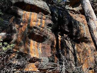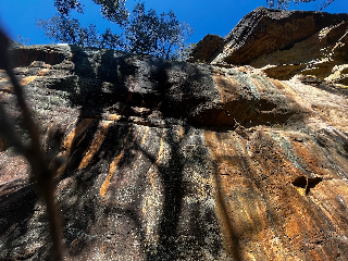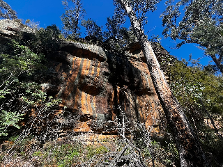 There is more rock in this valley, but didn't spot anything anywhere near as good. Upstream there is grey rock near the creek (canyon) but it's a bit vegetated. You can see some more orange stuff at the mouth of the valley just to the south of Justin's place on the way out from Sand River, but it's (probably) on private land. But if anyone develops this it would be definitely worth exploring downstream to the boundary of the public land.